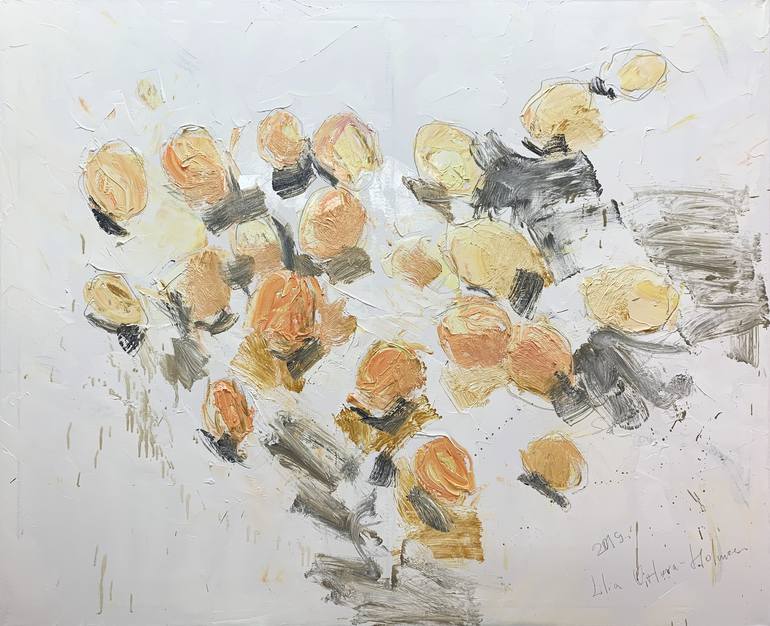Semi-abstract expressive and gestural still life painting. Inspired by memories of summer happiness.
