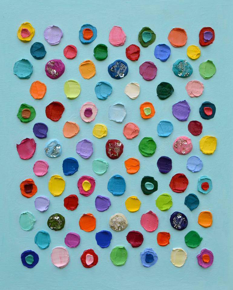Ann Marie is an impasto painter focusing on colorful abstractions and expressionist landscapes using only palette knives and heavy body paint straight from the tube. She slathers frosting-like paint layer upon layer onto the canvas with paint running off the edges, resulting in a sculptural, three-dimensional appearance. Her "Polka Daubs" series explores the deconstruction of color and texture into their simplest form. Ann Marie currently resides with her husband and four children Arlington, VA.