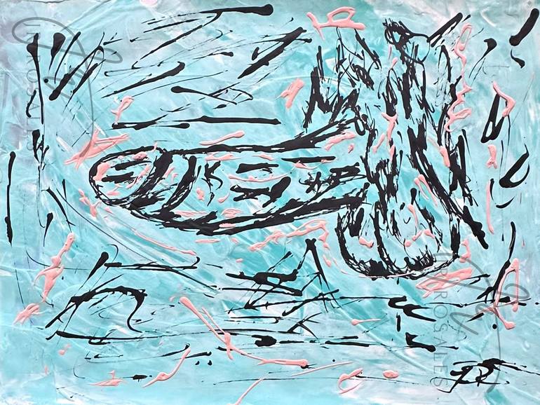 Aquatic Green 2024 12x9 abstract acrylic and ink painting on mix media premium paper male body art