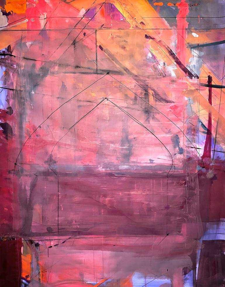 I painted this in 2023 after I moved to Greece. I wanted to explore colour and the Turkish and Arabic influence of this region, so I began creating several large works on paper with a mixture of oil media, tempera and acrylic.