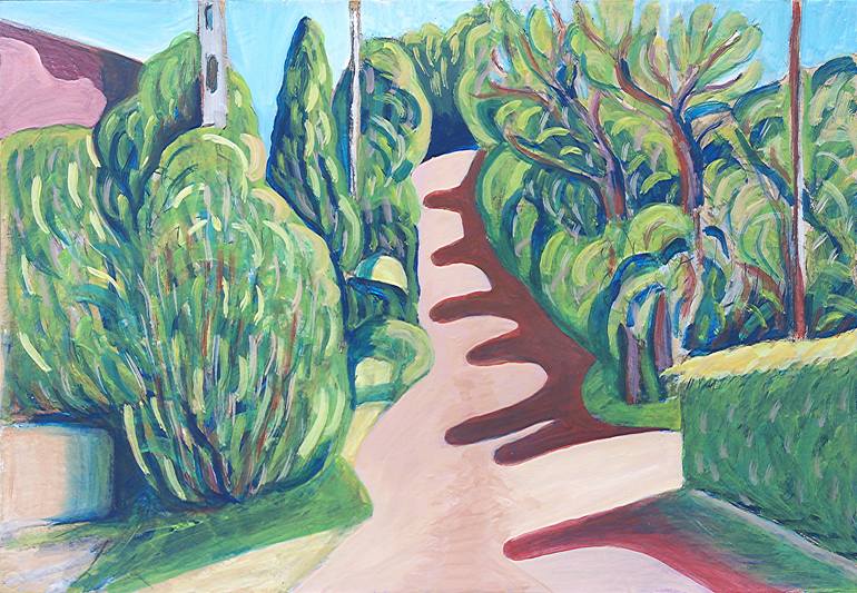 This oil painting was inspired by my surroundings near to our summer house at Lake Balaton, in Hungary. There are various coloured versions reflecting back the lights of different times of the day.