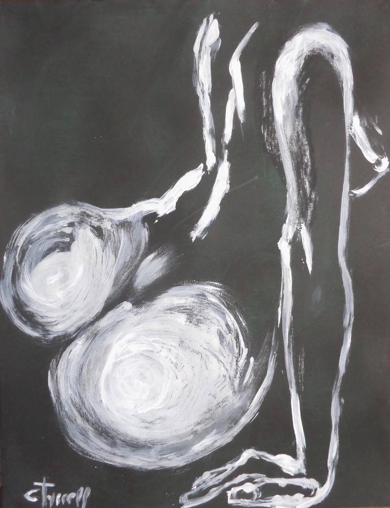 Original figurative painting. White acrylic painting on textured black paper. Abstracted interpretation of a female nude arched back. Size 50 cm x 65 cm (20" x 25.5"). Certificate of Authenticity. Deliver carefully rolled in a mailing tube.
