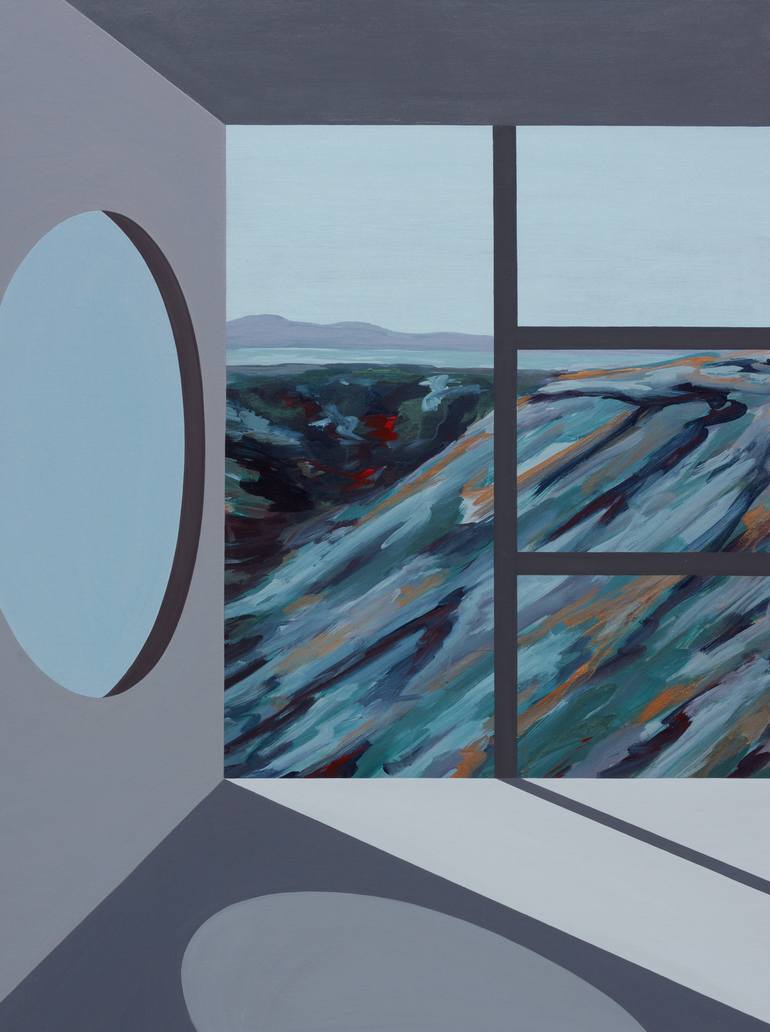 After making my 3 painting Arcosanti series, I was researching the space again and was moved by Paolo Soleri's daughter's, Daniela, testimonial of abuse from her father. This painting revisits the space with a revised emotional outlook. The visual memory of the place is now tinged by the emotional m...