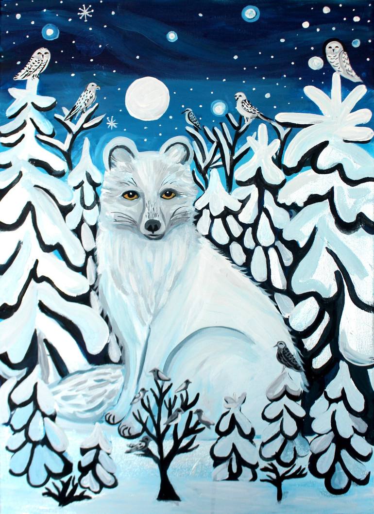 I wanted to paint this after seeing an arctic fox in a nature rescue preserve. I wanted to imagine the fox in its natural habitat, a secret snowy place that only they knew about. I want this painting to invoke a feeling of joy and wonder