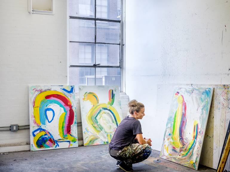 Norwegian abstract artist Marit Geraldine Bostad takes viewers on a journey to inner realms, erasing the line between the conscious and the subconscious. Drawing inspiration from psychology, her canvases become tangible manifestations of her psyche and present a way to disconnect from an externally controlled world through pure abstraction. Breaking away from the constraints of imposed themes and values in figurative representation, Geraldine describes universal archetypes that transcend the particular conditions of her personal life. This sets the scene for the audience to bring their meaning to her work. Geraldine’s technique involves the direct application of acrylic paint, using tools that seldom include a paintbrush. By combining tone tone-to-tone pastels with sparks of fluorescence, the artist carves out a distinctive approach to traditional Nordic Colour Theory. Marit Geraldine originally was an Art Director, with 10 years of experience working on visual projects in film, illustration and concept building in Oslo. Alongside her commercial work, she has practised painting, as a way to release and unwind. In 2009 Geraldine left her career in Art Direction to pursue her painting full-time. She has exhibited her work in Oslo, Dubai, London, New York and LA - and has received substantial acclaim from curators as well as galleries throughout Europe and the US, for her vibrant, strong and contemporary abstract paintings. In April 2017 Rebecca Wilson, Chief Curator and VP, Art Advisory at Saatchi Art picked Marit Geraldine as one of her "4 Must-See Artists" at TOAF London, out of 130 emerging artists. In 2020 Marit Geraldine was honoured to be among the 30 shortlisted artists chosen for the Ashurst Emerging Artist’s Prize in London. In May 2022, Geraldine was the face of the Affordable Art Fair Hampstead fair campaign, which could be seen all over London. She continues to work with galleries and institutions in London, New York, Dubai and Paris. In Norway, the artist recently had three major solo shows with KHÅK Kunsthall and Gulden Kunstverk (2021-2023) ARTIST STATEMENT: Through a series of paintings, Marit Geraldine Bostad investigates the themes central to her artistic research, the inner psyche, memories and human interaction. She blends her colours by pouring paint directly onto the canvas using various tools, seldom using the paintbrush - to create diverse, versatile effects with broad expressive strokes.