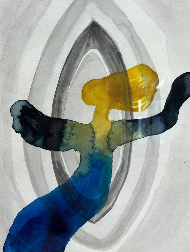 I love working in this medium, acrylic ink. It combines two different worlds, conscious and subconscious. So the final work for me is always a self exploration. And this work reflects that transformative moment in my life.
