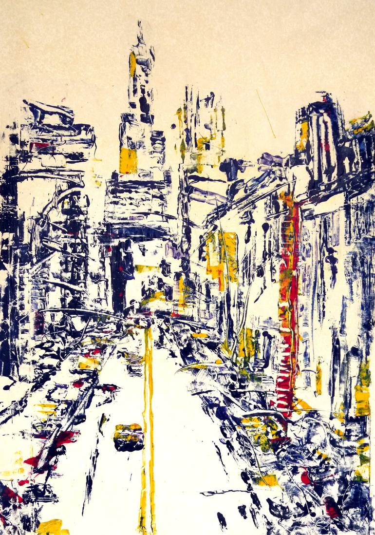 Movement in the city. The traces of the movement of people and traffic rise to meet the arrival of inhabitants and the morning. Also available framed