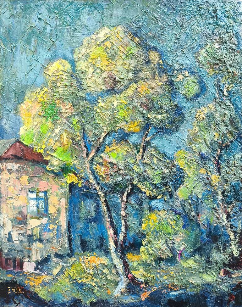 OIL/CANVAS Size - 40x50cm READY TO HANG Original oil painting, 100% hand painted on canvas. Come with signed certificate of authenticity This evocative oil painting beautifully captures the essence of a peaceful, sunlit day in a quaint, tree-lined setting. The artist employs a rich impasto techniq...