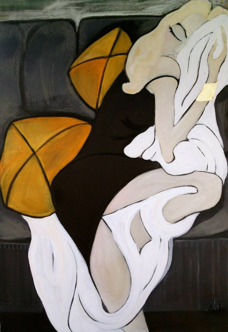 Dublin based artist Mo Kelly is one of Ireland's emerging talents. Miss Kelly studied fine art painting, before talking a year out to travel solo around the world finding inspiration. Her work is figurative and landscaped based. Mo has has exhibited nationally and throughout Europe and the U.S. to much acclaim. As both an artist and DJ, she is steeped in the cultural and creative art scene in Ireland’s capital. Her cityscapes capture the energy and style of a vibrant city that is constantly in a state of flux. Much of Mo’s work is set at dusk giving an other-worldly take on the traditional landscape. “I’m fascinated by the trickery of twilight especially the otherworldly dimensions and shadows it brings, using gold and silver leaf goes someway towards expressing this feeling of saturated dark luminescence that I love” Mo Kelly’s' artistic career got of to an early start; she won state art competitions while still in secondary school, this followed on through art college where she was chosen as the only second year student to exhibit in a final year show. Just out of college her work received the highest accolade and was chosen from a panel of artists and presented to the Irish Prime Minister (Taoiseach). Sienna Miller is also a fan, likening Mo’s work to " A rock 'n' roll Modigliani “ Last year Mo’s work was chosen to be displayed on the largest billboard in Times Square as part of the ‘See Me - ArtTakes Time Square’ curation. Mo supports many charitable organisations regularly donating paintings for auction, one such being Plan Ireland, she was delighted to be asked to design their St Patricks Day card which was sent all over the world. Mo’s work can be found online through Saatchi Gallery and A selection of Mo’s work is currently exhibiting in The Kildare Gallery at Carton House and The While Door, Sutton cross, Dublin. Mo’s twentieth solo show opens on the 11th May in The Red Bank, Duke St. Dublin 2. please see for more details