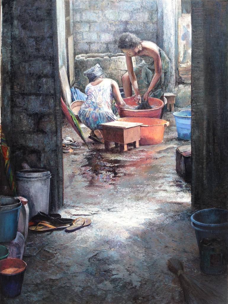 Born in Lagos. Attended the School of Art and Design, Federal Polytechnic, Auchi and graduated with Higher National Diploma in Painting and General Art. He has to his credit many group shows, private commissions and solo exhibition in London, Africa and abroad and has participated in art residency with Professor Ablade Glover and with Kofi Setordji under the sponsorship of Ford Foundation. Also took part in ‘’imagine art after’’ a world art project in the UK. SkyArt Portrait Artist of the Year 2014, SkyArt Landscape Artist of the Year 2015 and 2016 Titus has particular interest in painting landscapes and sceneries. His painting technique is elaborate and distinguishable. There is honesty and sincerity expressed in his pieces. He paints with a palette knife, mostly in oil but also water colour and pastel. Titus view life as one great adventure, travelling is his passion, and he loves to create works to share with the world which he believes in someway will impact society and inspire good ness in humanity. Art is man’s quest for the truth either consciously or unconsciously done. It is inexhaustible. The quest for the never ending truth is what I call individualistic tendency. With this, through the exploration of colour and texture, I hope to convey a strong sense of emotion with the ever changing mood and voice of my inner mind which constantly surprises and inspires me. I have interest in painting landscapes and everyday happenstance; also have the creative tendency to express my self with other mediums, styles and approach. This evoke as a result of much saturation with my usual interest. Differ from the conventional painting process, my paintings are often distinct. I represent things in a truthful manner. In achieving a creative nature of my artistic process, I have a strong command of my subject and material, from the basic background, I’ll paint with a palette knife, a complete painting from the top to the bottom like a computer screen refresh. I look at my life and travel, as a large expanding mosaic where the whole is greater than the individual part.