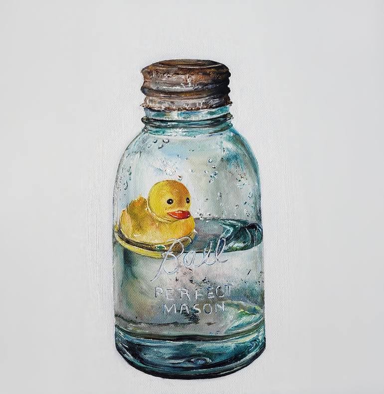 As a duck takes to water Size: 13" x 13" Oil in stretched canvas I did this painting as part of the the #LIQUIDPAINTCHALLENGE going around on social media. Water and glass, both are my nemesis - they look very simple but of course appearances are deceptive as it is very difficult to capture the tra...