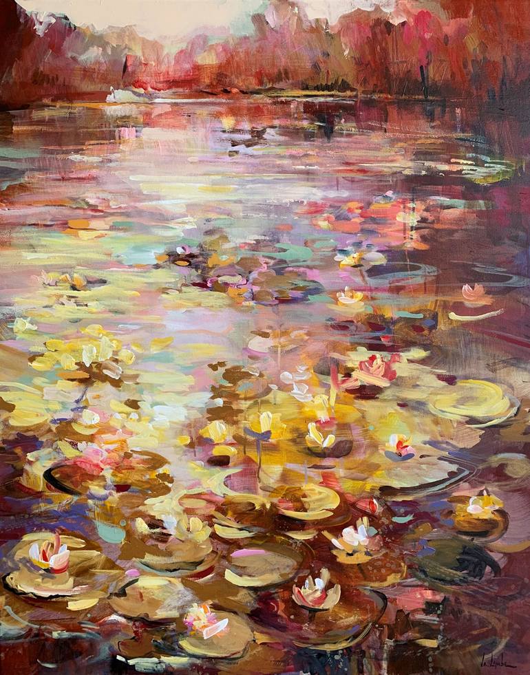 The water lilly pond painting. The sides of the picture are painted, the varnish contains UV protection.