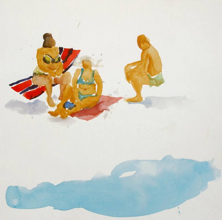 Artwork inspired by the summer beach atmosphere at the Adriatic sea. Watercolor on paper painted with sea water.
