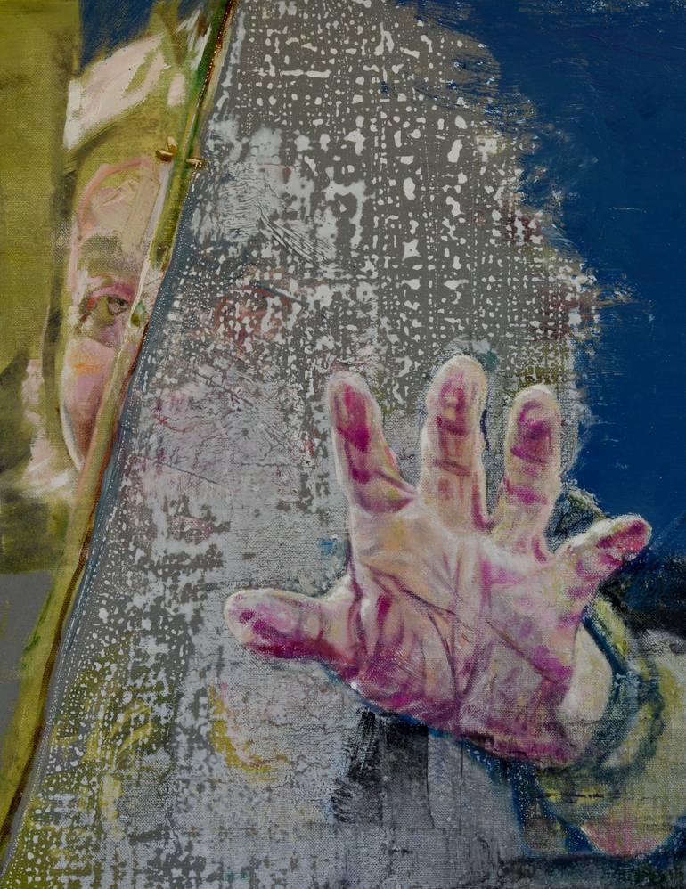 While Christos Tsimaris‘ paintings are primarily portraits and figurative pictures. However, his aim is not to represent a beautiful image of a person, an individual, rather it’s an ongoing exploration of the process itself; how the painting is created in relation to its structure, composition, colour and mark making. Like many figurative painters of his generation it’s impossible for Tsimaris to avoid the looming shadows of Lucian Freud and Francis Bacon, both of which have dominated the figurative world, their paintings both evocative, emotional and full of existential angst. However Tsimaris is finding his own path into the light, away from these titans of 20th Century art, his work constantly seeking to go beyond the Freudian discipline of representational art and the more gestural expressionism that we are familiar with in the figurative paintings of Bacon. Often returning to himself Tsimaris spends endless hours honing his craft infront of a mirror in the studio, drawing, painting, adding layers of colour only to pare them back, the search for a new form of expression willing him forward, to create a new mode of expressing the humanity within people. Accidents and mishaps play a large part in his process, often layering and scraping, his palette reduced to tonal impressions, his is ready to paint with acrylic over oils an un orthodox way to paint.This playful investigation into the qualities of paint and the act of mark making are what give these paintings their energy and vibrancy. They are not still, always moving. Never certain. Here’s what he has to say about his work: I often spend endless hours in front of the mirror painting or drawing intensively myself, as I am, to quote Lucian Freud, ‘permanently available’. Quite often I use photographs that inspire me for some reason, but I won’t necessarily transfer the image directly to the canvas – they are merely the vessel that will initiate or ignite a painting, with the painting developing in to something independent of any emotional weight that may have triggered the initial reaction . My main aim is to explore how the painting is created in terms of structure, composition, colour and mark making, rather than focussing solely on what it represents.