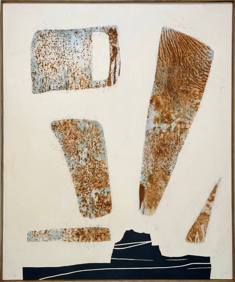 Stephen Rybacki’s work brings a deep sensitivity to surface, texture, and natural process to the space. Currently refining his artistic voice, Stephen’s mixed media work explores the delicate beauty of oxidation intermixed with contemporary abstract painting. Layering materials of rust, plaster, fabric, and various paper into tactile compositions that speak to time, imperfection, and presence. Stephen’s work is built on a dialogue between control and chance. While he creates the conditions for oxidation to take shape, the final outcome is never fully in his hands. His relationship with his work happens up close. He often studies small sections where oxidation has left its mark, or imperfections deserve to be acknowledged. These intimate moments in the studio shape the soul of each piece. The surfaces aren’t polished or manufactured- they’re honest records of interaction between material, time, and intention. When viewers encounter Stephen Rybacki’s work, their reactions are almost always the same: curiosity, followed by a step closer. His pieces don’t reveal everything at once...they invite exploration to what he hopes is a gateway- a way to remind viewers to slow down and notice the overlooked. Stephen has exhibited locally in the Los Angeles area for the past 8 years, also including reoccurring art fairs with SaatchiArt’s “The Other Art Fair” as a recognized top artist to collect. His exhibition experience has expanded rapidly beginning in 2025 with group exhibits and sales in New York (Rukh Art Hub/Mriya Gallery) and Barcelona (Uxval Gochez Gallery), as well as group shows in St Louis MO (St Louis Guild), Wilmington NC (Gallery 906), and a recent invitation to ADC Fine Art’s (Cincinnati OH) Art Comes Alive group exhibit and gala upcoming.