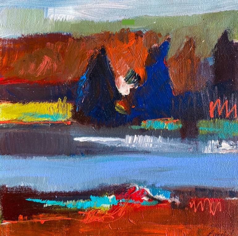 My paintings scenes reflect areas of Quebec and New England. Sometimes, they seem to talk to me. I look at trees, hillsides, water and suddenly, the painting becomes clear in my head. Having lived in these two areas, I have a soft spot for these regions. The subject matter is less important to me than what response or effect we receive when we look at my paintings. Shapes are intertwined with special and unique color combinations. A tree becomes an elegant shape; a river turns into an soft line. Acrylics, ink pens, charcoal are my favorite mediums. I use them in a careful but somewhat abstract way. My scenes are meant for you to reflect on a distant memory or just make you dream of a place which you hope to see one day.