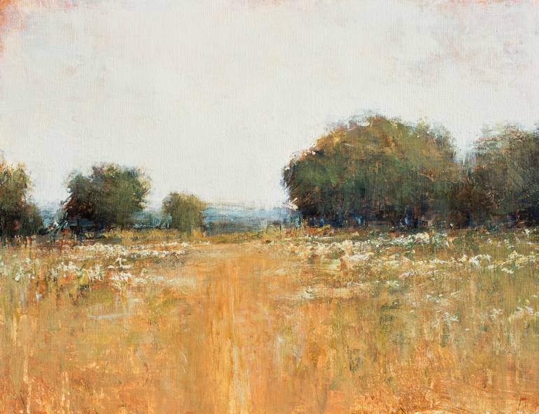 August Afternoon is a plein air impressionist style acrylic painting created with palette knives, brushes and non traditional tools. This painting was created plein air, on location. This piece has rich colors, nice thick paint texture with beautiful light and atmosphere. This piece is 18x24 painted...