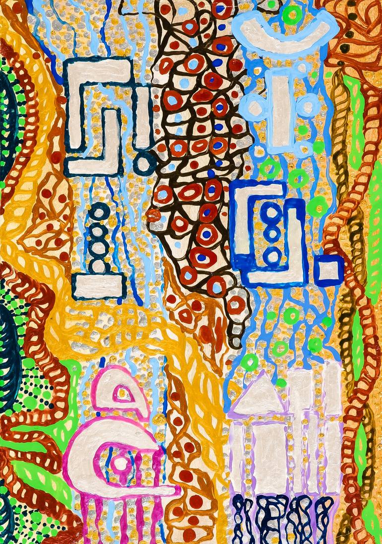 Artistic variation on the runic alphabet. Painted on a MDF board. Sides of artwork are painted. The artwork doesn't be framed.