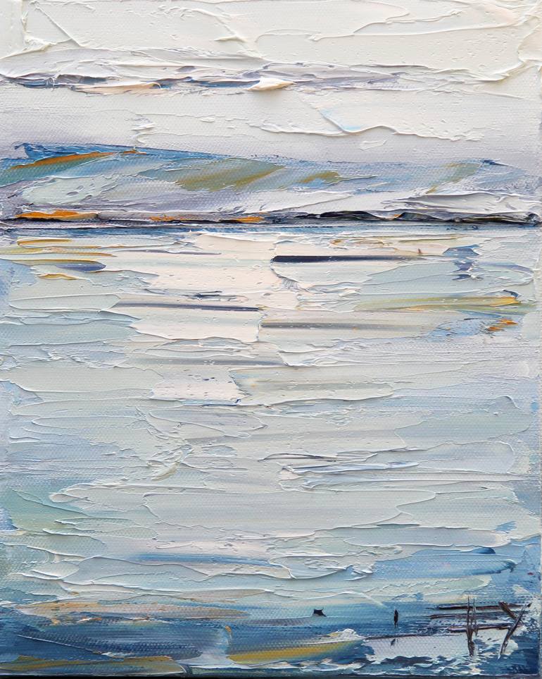 A thick, impressionist, textured impasto oil painting featuring the Pacific ocean as it greets California in the Monterey Bay, with a beautiful sense of movement, captured by my palette knife with a lot of texture, on a gallery wall canvas. Featuring a coastal, harmonious color palette.This original...
