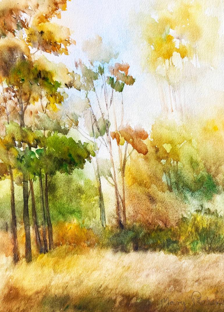Autumn is a beautiful time in my part of the world and I enjoy painting scenes from the woods near me. Here is an example.