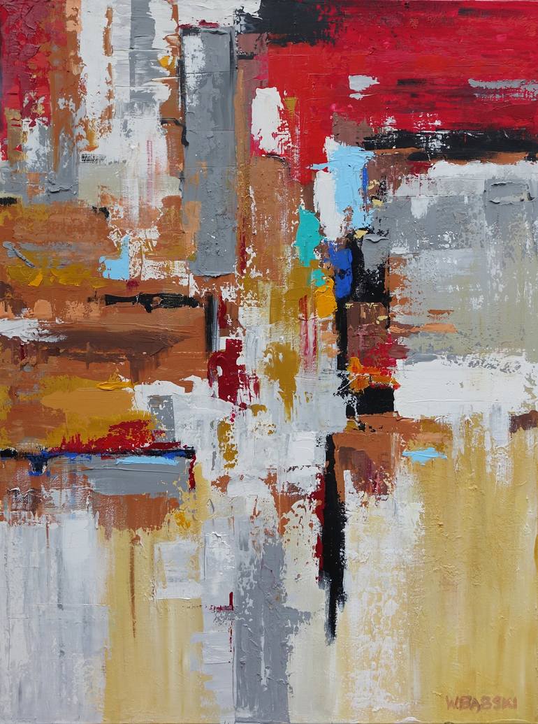 Wojtek Babski. Born and still based in Katowice, Poland , with his own painting studio. As an experienced artist, he already has an established position, which is confirmed by over 350 sold artworks decorating interiors in many countries on five continents. They are very eagerly bought due to their undeniable decorativeness. The subject of his works is very diverse. These are mainly female motifs, street art, pop art, abstractions , collages. He paints faces, silhouettes and figures. His portraits are combinations of realism, pop art and abstraction. This is definitely modern painting. Sharp, vivid, often bright, aggressive colors, strong, bold strokes of putty and brush, and contrasting patches of color, overlapping and interpenetrating layers creating a thick, intricate texture. The painting is supposed to make an impression, it should dominate the interior, it should be a focal point, not a background. Large formats complete the whole. Recently, street art has taken an increasingly important place in his work. Free, unrestrained, not subject to canons, often chaotic, touching on important problems, but also having a purely decorative character more and more boldly reigning in cities and suburbs is another important topic on which the artist focuses. All his paintings are made on canvas. He likes to work on rather large format, ranging from 1.4 to 2 meters or larger. What he likes best in paintig is energy, spontaneity, colour, emotions and impression. And that’s what he is trying to achieve creating his works.