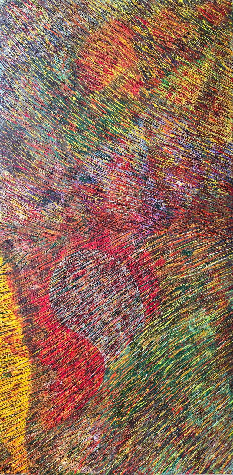 The underlying themes of my art more often than not seem to deal with the questions of identity, of reconciling the old with the new, of inspiration and of a psychological sense of belonging since these questions have preoccupied me for the better part of my life now. Therefore, although an intuitive and subconscious process, my own inner struggle to make sense of my human purpose in a complex and multilayered world seeps into my art. Having said that, if one were to ask me in the simplest terms why I make the abstract art that I do, the answer lies in the compulsive need to start with a blank canvas and losing sense of space and time till I have translated that untranslatable feeling onto the canvas.