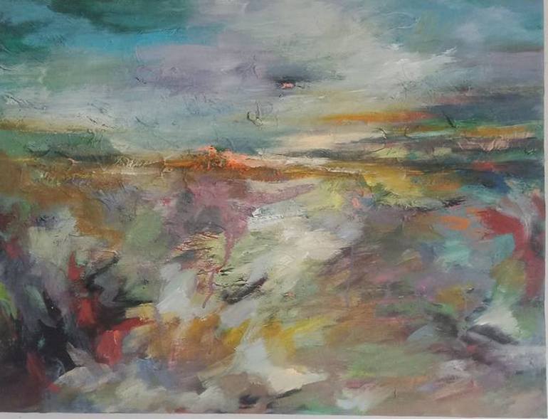 landscape painting of autumn moments depicting beautiful autumn scenes in nostalgic emotions, generous brushstrokes expressing strong emotions and impressions in the artist's heart best acrylic paintings with surface coating and greso layers, paintings can be hung immediately, thanks for the interes...