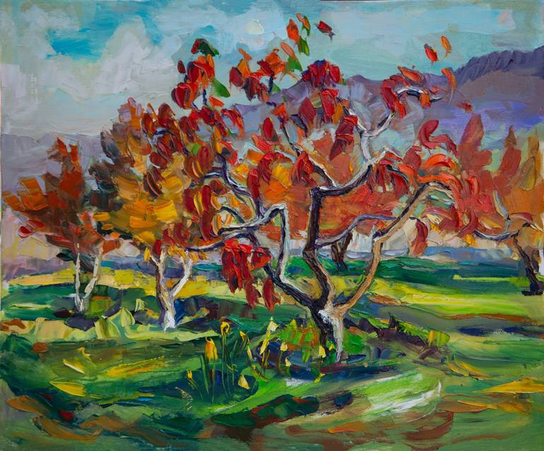 Autumn is nice time for inspirition. in the autumn field you want to express every wonderful color, that your eyes see. I tried to do that. I painted this Artwork with thick oil colors stroks with pallete knife. The painting is on a stretched canvas so as you can hung it even without any frame. If ...
