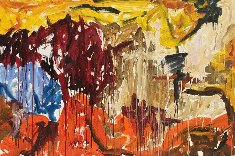 This is an original abstract expressionistic painting made of oil on canvas of size: 120x180 cm. Created on May 7, 2017.