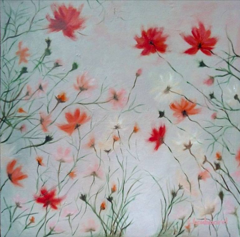 Autumn Oil on Canvas 71 x 71 x 3.5 cm Field of cosmos before winter. In every season there is beauty.