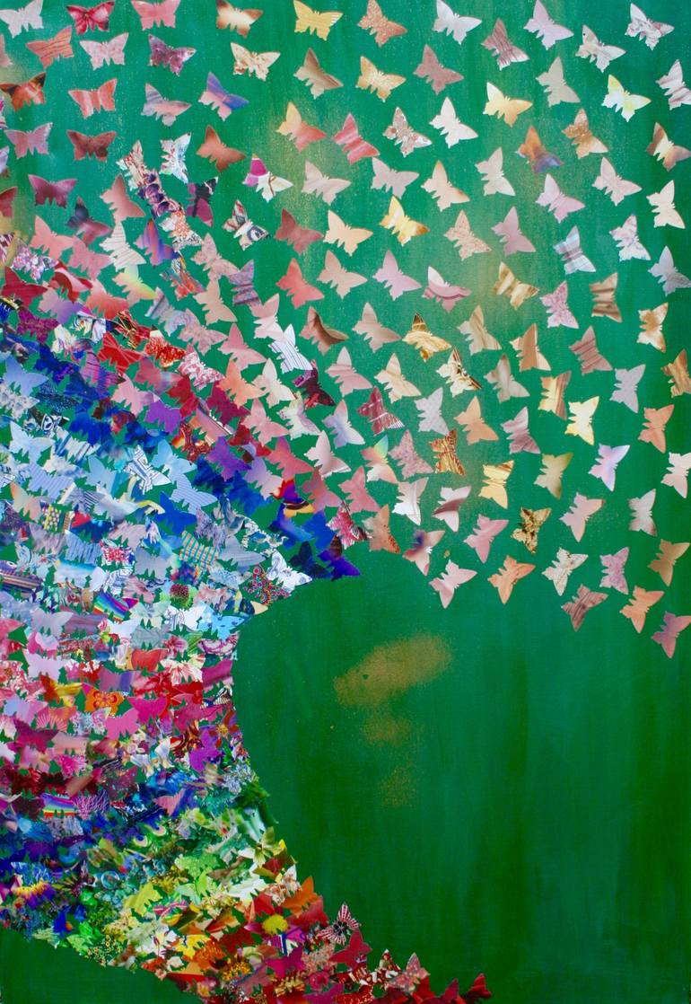 Aventi forms part of the Butterflies On Tour Collection, a series of 9 collages made from mixed media using various painting layers and paper.