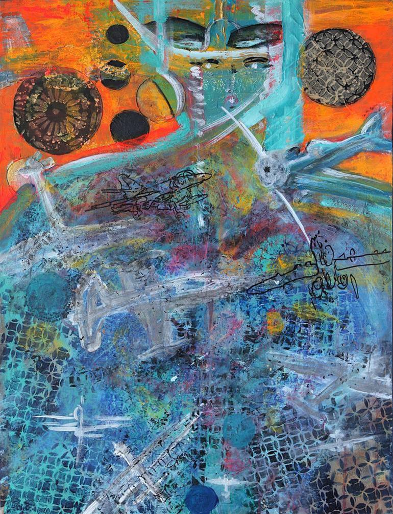 This vibrant piece is one of my favorites from my aviation series. Like much of my work, this piece is inspired by the elegance and power of airplanes, as well as the cacophony of color and sound that one finds at the airport. Some dread their time at the airport, but I love it, so I paint it loving...
