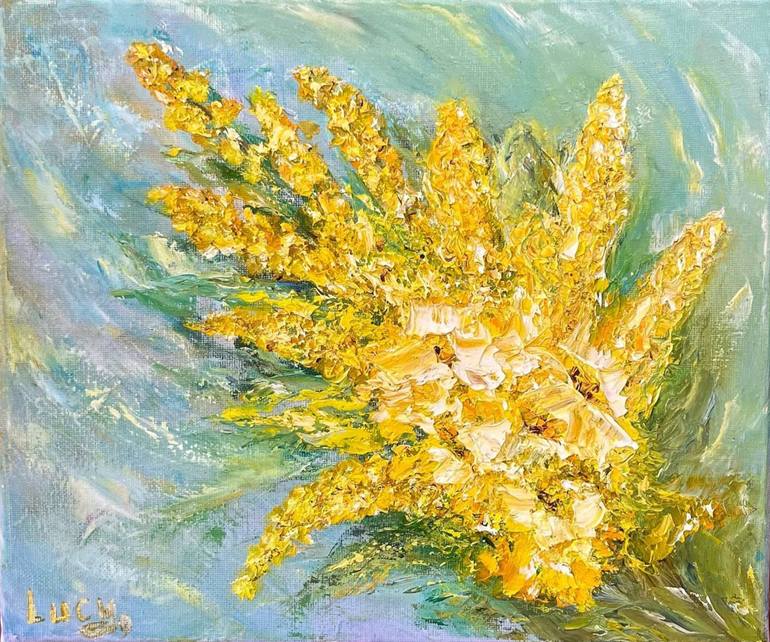Hello my viewer! The painting is painted in oil on canvas. Canvas on a stretcher. You can immediately hang it on the wall. My favorite time of the year is spring when everything blooms, bringing new life and energy to the world. "Golden Symphony" captures this feeling in vibrant, textured strokes of...