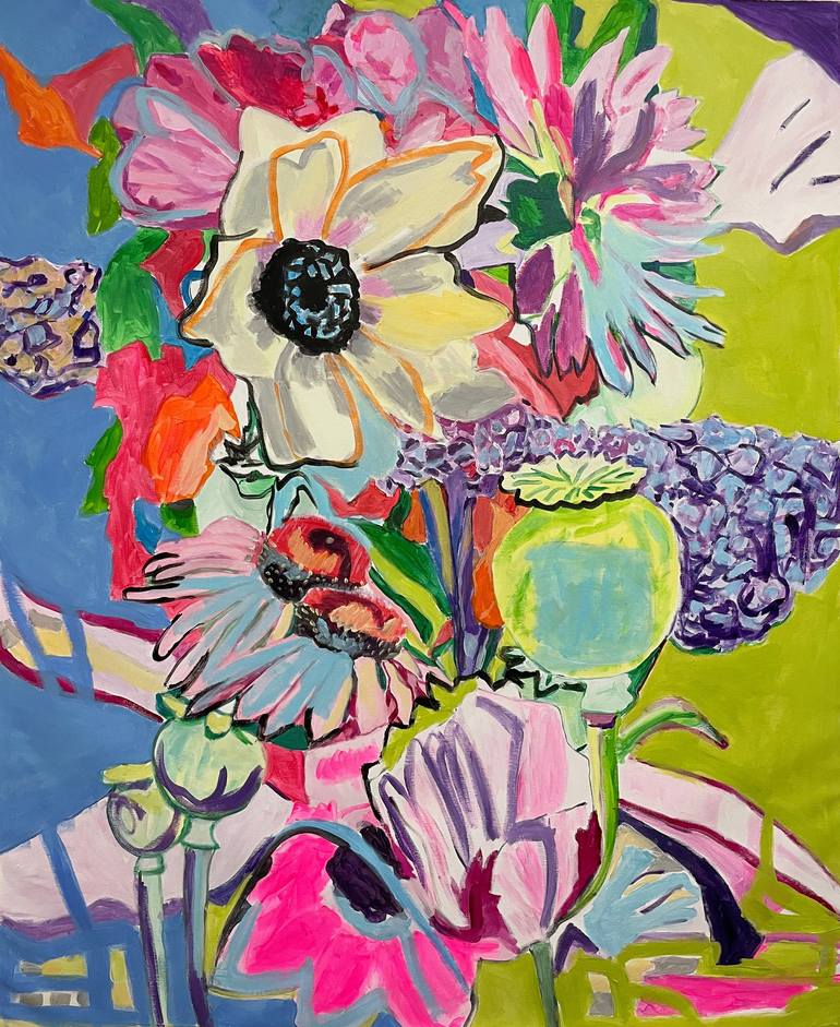 I put together a bouquet of the most beautiful flowers. These cheerful colors are the colors of spring for me.The painting is not stretched, I will send it in a roll.