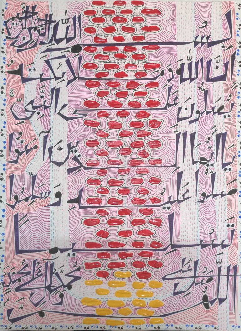 Al-Ahzab, Ayat Abstract calligraphy style with bold thick Acrylic painting Abstract acrylic painting with Ink