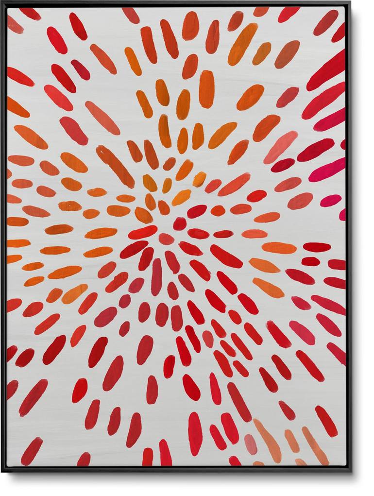 Artfully hand-painted on a canvas base using mixed technique, oils and acrylics.