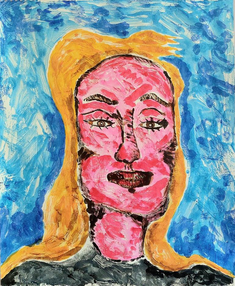 Portrait composition based on earlier painting and looking at the work of other printmakers,such as German expressionism. One off transfer painting on editions.Signed and dated on reverse.