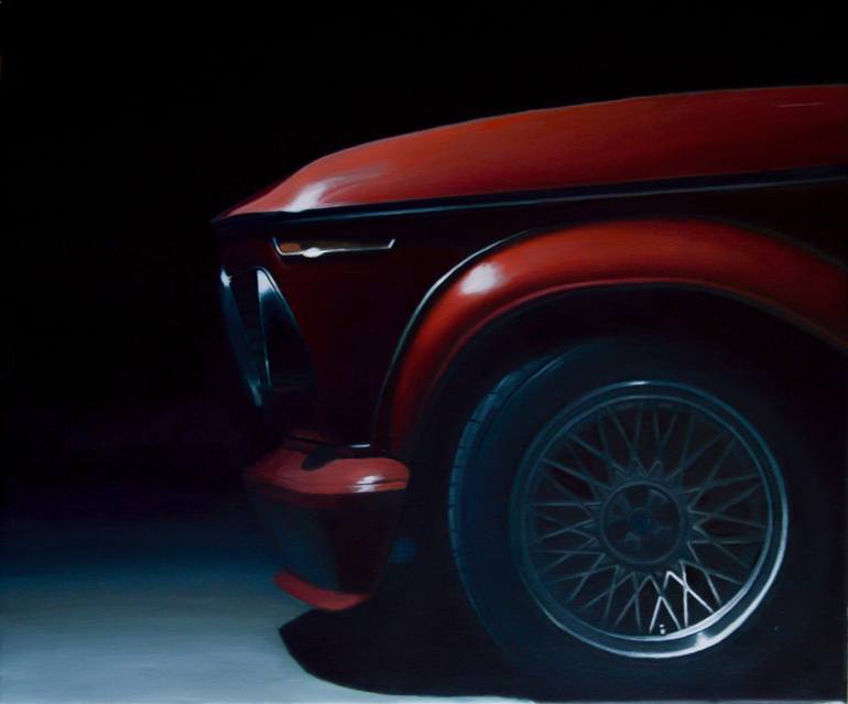 A realistic oil painting of a legendary BMW 2002 from the 1970s.