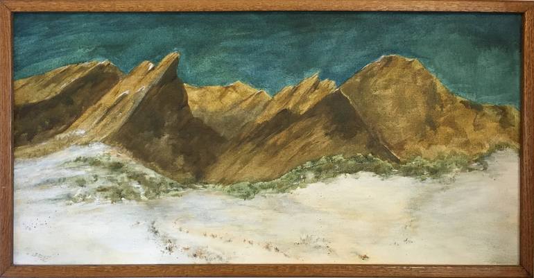 Introducing BOULDER FLATIRONS and experience the majestic beauty of the Boulder, Colorado Flatirons Mountains with this original, one-of-a-kind acrylic painting on stretched canvas. Measuring 33 x 17 inches and encased in a stunning oak wood frame, BOULDER FLATIRONS captures the essence of nature's ...