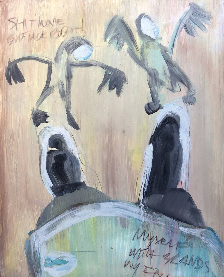 MYSELF WITH BRANDS, MY ELIXIR. NICE ROBOTS, SHIT MOVIE! // BOREDOM, LOOK AT MYSELF. I LOOK DOWN FROM MYSELF, SEE LACOSTE SIHRT, ADIDAS SHORTS, 70S CHUCKS. AND THEN I SEE THESE AWESOME COOL ROBOTS STANDING ON MY FEET, WHOSE TV SERIES THEY WERE TAKEN FROM WAS THE BIGGEST FAILURE!