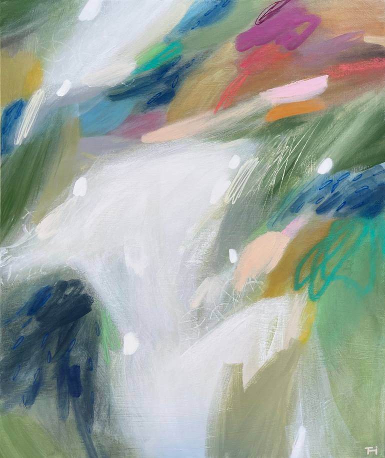 This abstract painting is inspired by nature, especially gardens. Terri Dilling's art makes reference to the landscape around her but also an emotional landscape within. The duality of interior/exterior realms gives the work a depth of meaning. She uses gestural marks and color relationships to expr...