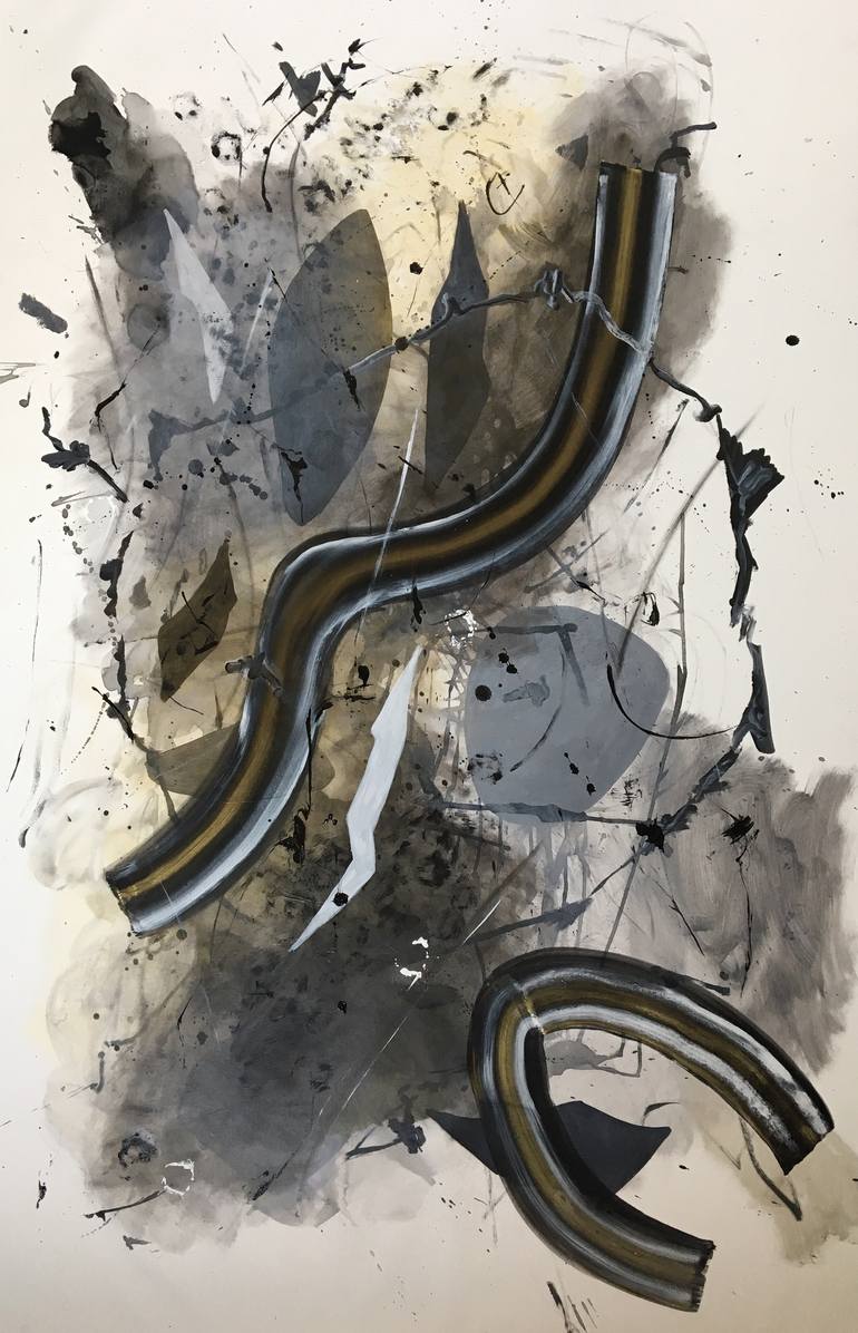 My work is a construction as well as a research of the expressive possibilities behind my process as an abstract artist. As such, they function as the premises of my production: Experimentation, observation, comprehension and registering, being this last instance when an artwork acquires a purpose which can be defined as “utilitarian” because it generates a feeling or particular sensation within the composition. Content is approach as a personal expressive search, freely from the geometric to the lyric. The totality of my work simulates the construction of a language that mutates its calligraphy and amplifies its vocabulary by means of incorporating, subtracting and/or repeating elements. Abstract painting is a technique dependent on the mind and at the same time subject to a necessity to comprehend body and emotion; for this reason, my work is influenced by the complexity of mental processes in relation with the structures we understand as intuition, automatism, certainty, analysis and deconstruction of external stimuli, because of its capacity to express a spirituality devoid of any mysticism. My artwork acts as a correlation between the cathartic and the homeostatic, unchained in a mechanic dance; where form, color, and space, are the triptych that dictates the compositions expressed through a language which vocabulary weaves its own history.