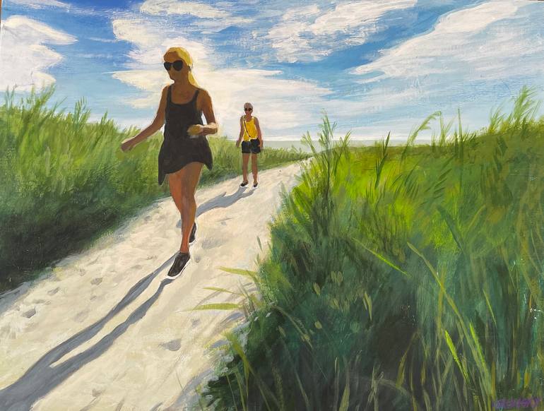 Sauble Beach here in Ontario is a favourite vacation spot for us and this image depicts two figures (family members) returning from a day at the beach. I particularly like the shadows to suggest the late afternoon time of day.