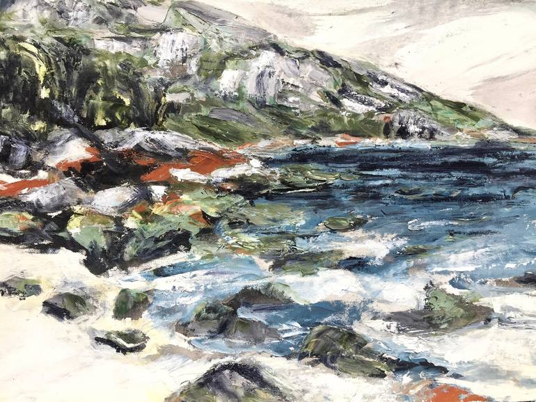 Back to the Ocean is an original painting on paper of a view captured in Whiskey Bay, Australia. It is composed of oil, wax and ink. The build-up and scraping down of the various layers of medium to reveal markings that reflect the earth’s natural process of erosion and wear over time. Framed in ...