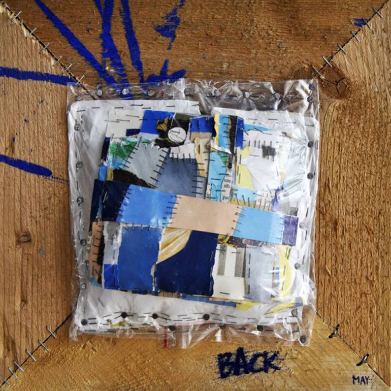 The fourth dimension. Back is the time. Back is also the representation of the fourth dimension. In this work I made out a lot of my works on paper, I have ripped and torn and mended again. And then packed inside a transparent plastic, to protect them from the weather and from the same time. This op...