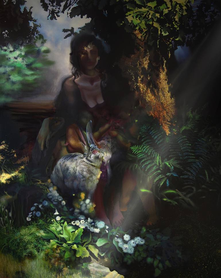 "Backwoods" belongs to erotic serie where the groundwork for paintings are amateur erotic photographs - material which can evoke strong urge to creation. The aim of this kind of photography is quite obvious but its possible to find in it uneasy beauty of randomness. I use it as a tool during creatio...