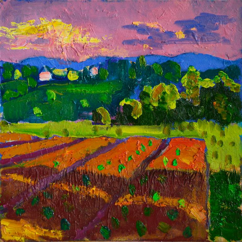 Hello. Expressive landscape reflecting sunlight. I created this landscape by accident. When he was working in the garden in his native village, he saw the bright light of the setting sun. It was about seven o'clock, the beginning of May. I quickly went to get paints and an easel. The landscape was c...