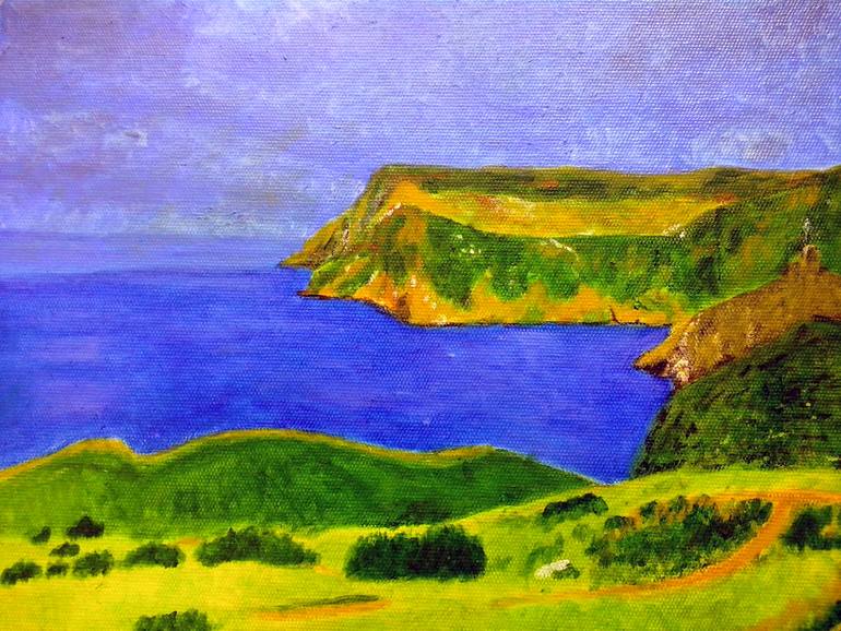 You can see in a picture one of the most picturesque bays on the Black Sea. Bright juicy greens in the foreground are shaded by deep blue colour of the sea. The heavy cloudy sky creates feeling of dramatic character. Looking at a picture, you can feel tension and power of the nature. Enjoy!