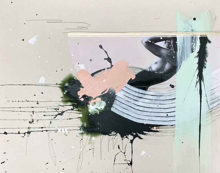 This work was the first of its kind, which is why it is not currently listed for sale. I was working on two abstract medium sized paintings in my studio, while also working with some photographs I had printed from the series "Elegant with Lena". Working at the same time on multiple projects is not r...