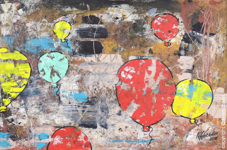 Balloons float in the air with ease. Carefree and free, they move in the air.